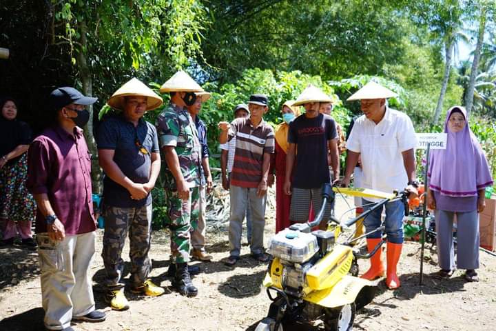 Bolmut– Bupati Bolmut Drs. Depri Pontoh Menyerahan Bantuan Alat Alat Pertanian Untuk ketahana Pangan Desa Paku Selatan Kecamatan Bolangitang Barat yang Bersumber dari anggaran 20% dana desa tahun anggaran 2022 yang Bertempat di Sangar Tani Desa Paku Selatan.