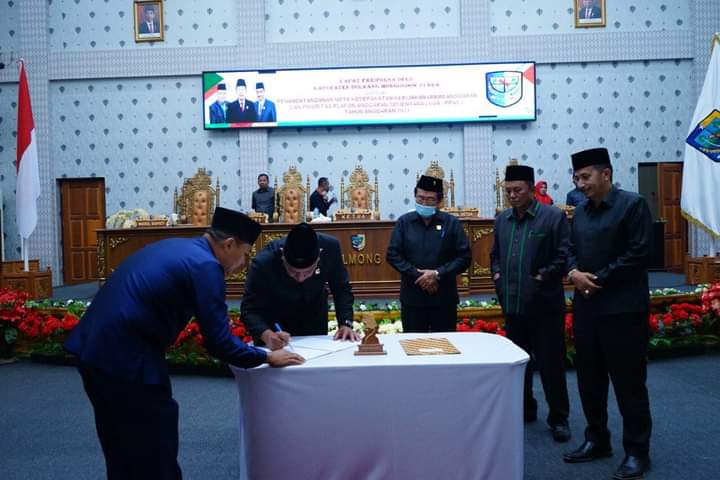 Bolmut– Bupati Bolaang Mongondow Utara Drs. Hi. Depri Pontoh menghadiri Rapat Paripurna DPRD Kabupaten Bolmut Dalam rangka Penadatanganan Nota Kesepakatan Kebijakan Umum Anggaran Dan Prioritas Plafon Anggaran Sementara (KUA-PPAS) Tahun Anggaran 2023 yang bertempat di ruang sidang DPRD Bolmut.