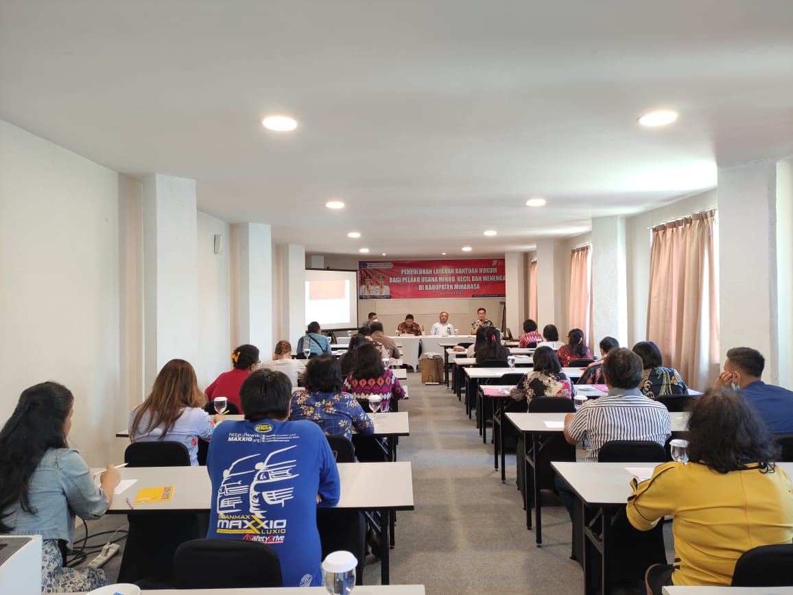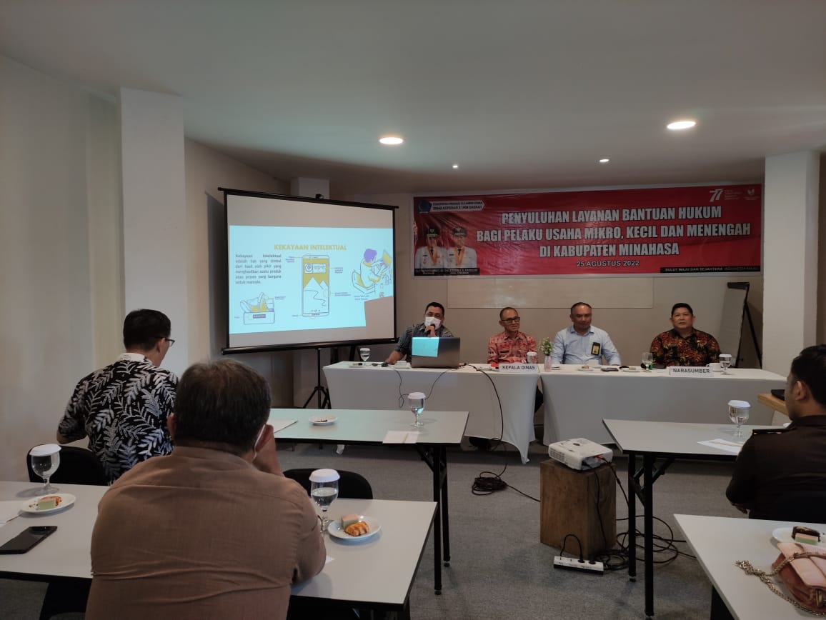 Manado– Kamis, (25/8/2022), Kantor Wilayah Kementerian Hukum dan HAM melalui Divisi Pelayanan Hukum dan HAM melaksanakan kegiatan Penyuluhan Layanan Bantuan Hukum Bagi Pelaku Usaha Mikro, Kecil dan Menengah di Kabupaten Minahasa.