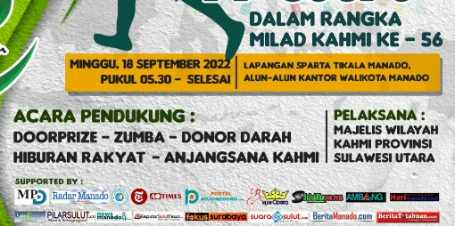 Menurut Ketua panitia pelaksana Syarif Aif Darea, puncak kegiatan Milad KAHMI akan diksanakan, jalan sehat mulai pagi pukul 05.30 wita, berlokasi lapangan Sparta Tikala, Alun-Alun Kantor Wali Kota Manado.