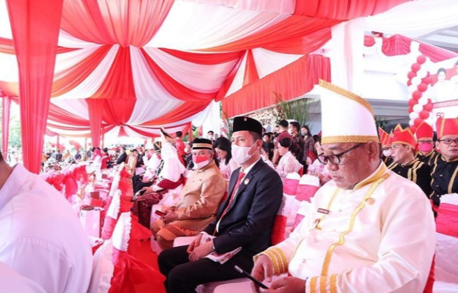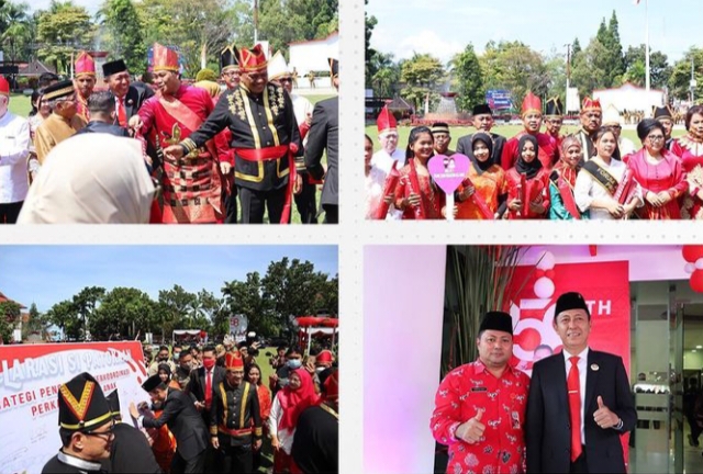 Bolsel–Bupati H. Iskandar Kamaru SPt didampingi Sekda M. Arvan Ohy SSTP MAP mengikuti secara langsung Upacara Peringatan Hari Ulang Tahun ke-58 Provinsi Sulawesi Utara (Prov. Sulut) yang di gelar di halaman Kantor Gubernur Manado, Sulut.
