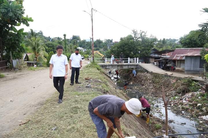 Manado– Walikota Manado Andrei Angouw, sebelum menuju kantor memanfaatkan waktu untuk melihat EMBUNG di Kelurahan Banjer Kecamatan Tikala Manado.