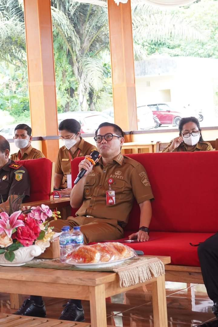 Minut–Pemerintah Kabupaten Minahasa Utara bersama Forkopimda mengikuti rapat Pemantauan Pemilihan Hukum Tua Serentak Tahun 2022 Oleh Direktorat Bina Pemerintah Desa Kementrian Dalam Negeri Virtul zoom meeting, JG Center.