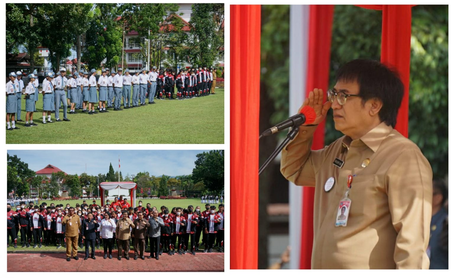 Hadir dalam upacara ini Anggota DPR RI Adriana Dondokambey, Pejabat Tinggi Pratama dan Pejabat Administrator Pemprov Sulut, Perwakilan KNPI, Pelajar dan Atlit-atlit yang akan mengikuti Popnas.