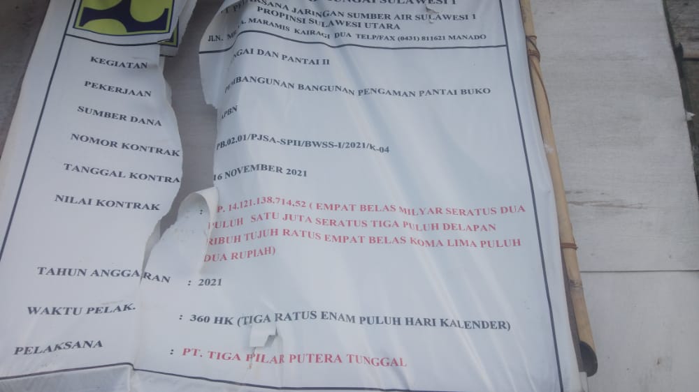 Sementara itu, di tempat terpisah, Pejabat Pembuat Komitmen (PPK), Pelaksana Jaringan Sumber Air Sulawesi I, Provinsi Sulut, Ronny Ruston, membenarkan jika pekerjaan tanggul pengaman Desa Buko masih terus dilakukan. “Saat ini pekerjaannya telah mencapai 90 persen. Sisanya dalam pelaksanaan perampungan, sebab ada beberapa pekerjaan yang harus diperbaiki oleh pihak pekerja,” ucap Ronny.