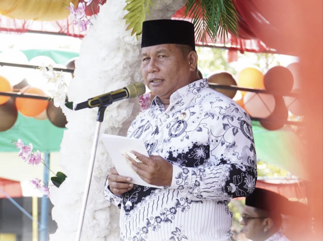 Sebagai inspektur upacara, Wabup Deddy membacakan pidato sambutan Menteri Pendidikan, Kebudayaan, Riset, dan Teknologi Nadiem Makarim.