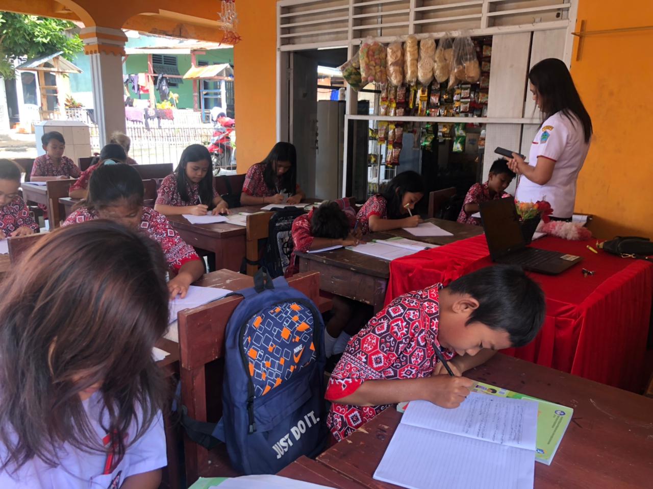 Menarik, diseputaran sekolah dirumah masyarakat ada tiga kelas yang melakukan belajar mengajar di teras rumah. Salah satu warga yang ditemui disekitar lokasi belajar mengajar tersebut mengatakan, kegiatan belajar-mengajar sudah berlangsung sejak gedung sekolah dilakukan renovasi hingga saat ini.