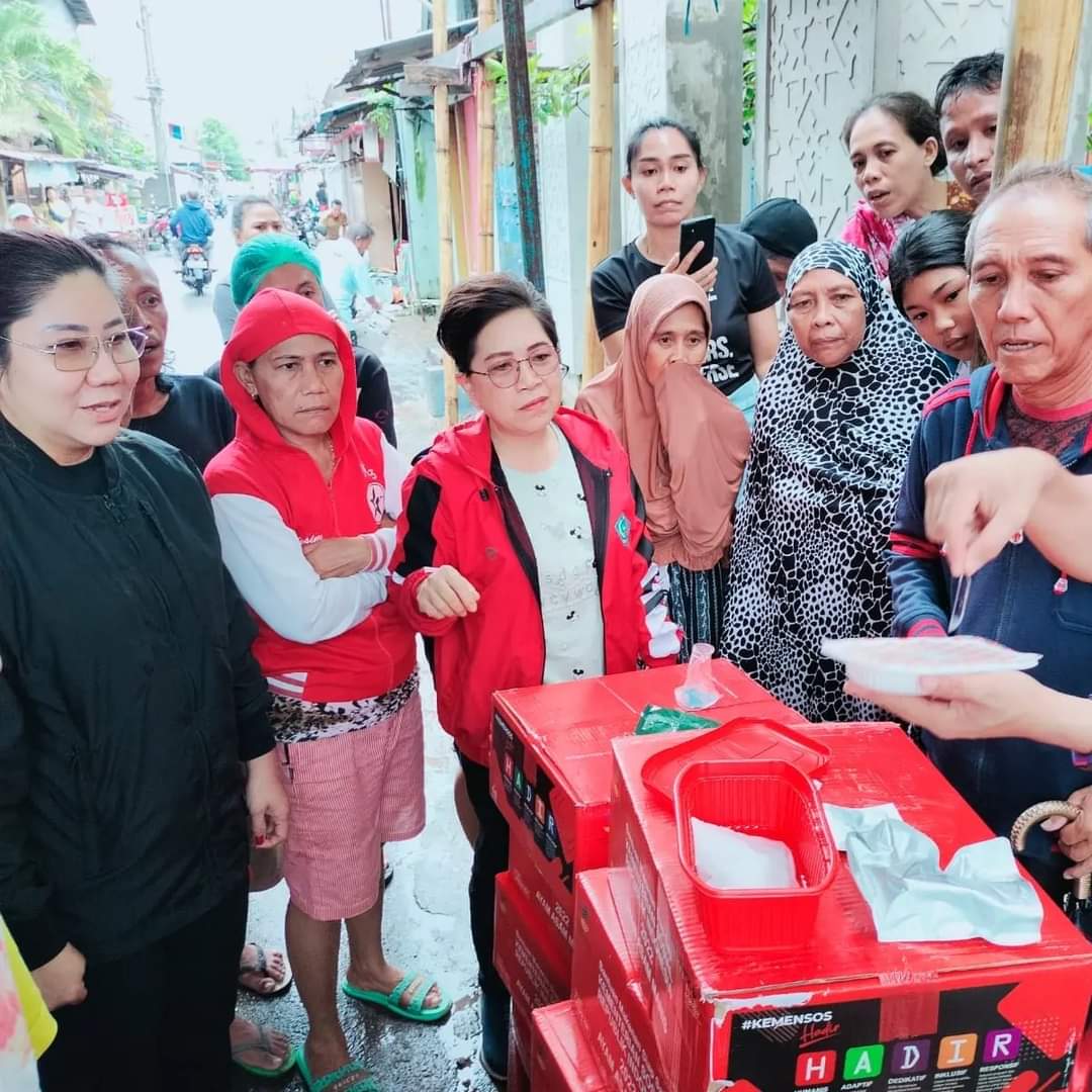 Pembagian Makan Siap Saji di lokasi-lokasi banjir di salurkan langsung Kepala Dinas Sosial Daerah dr Rinny Tamuntuan yang juga merupakan Pj. Bupati Sangihe bersama denga Sekretaris Dinas Sosial dr Merry Mawar yang juga merupakan istri dari Wakil Walikota Manado.
