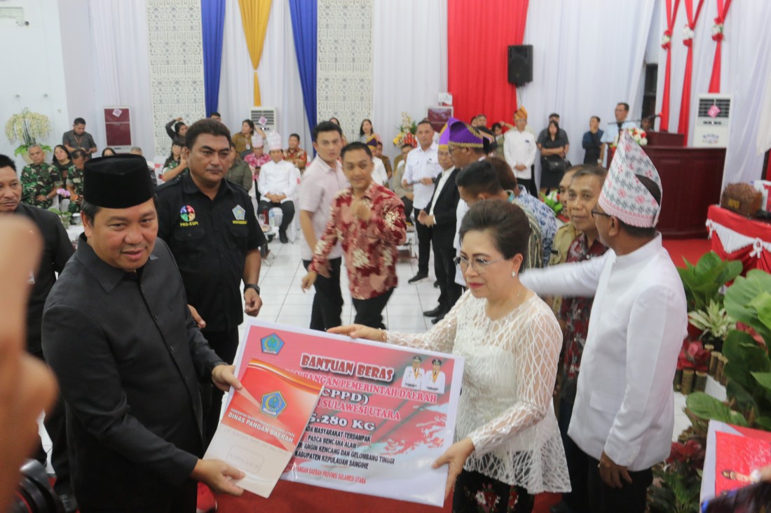 Usai Rapat Paripurna Istimewa dilanjutkan dengan penyerahan bantuan secara simbolis diantaranya, yang diserahkan secara langsung oleh Wagub Sulut Steven Kandouw