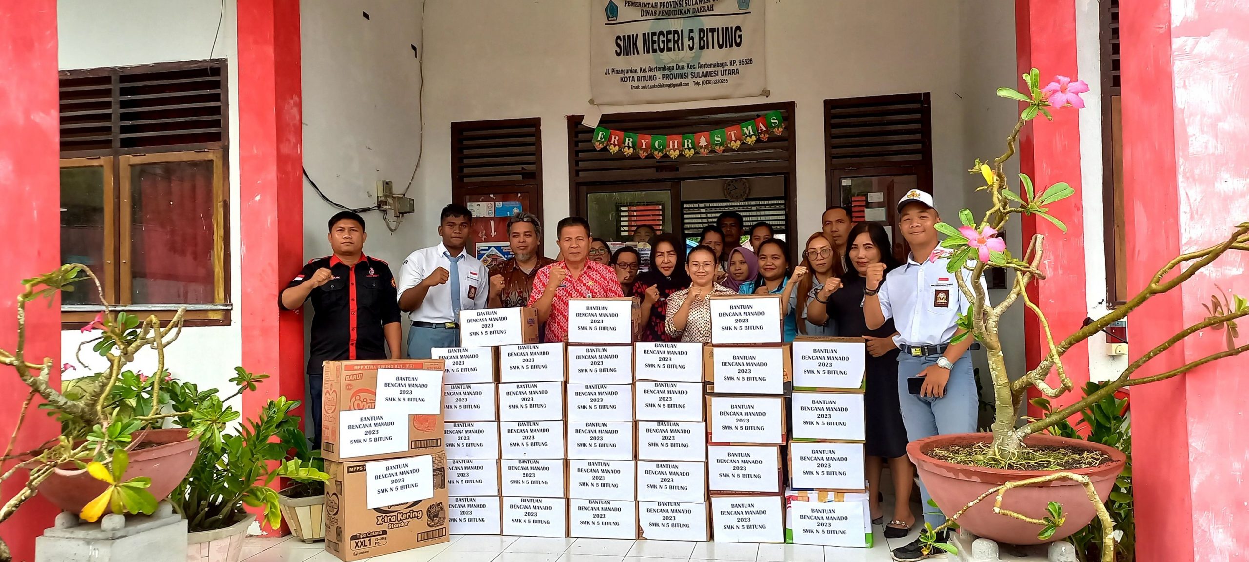 Bitung, SMK Negeri 5 Bitung melaksanakan aksi kepedulian kepada masyarakat Kota Manado, yang tertimpah bencana alam. Jumat,(27/01).lalu. dengan gerakan kepala sekolah Drs Maxi Rompas SH,MSi M. MPd aksi peduli yang di bentuk di lingkungan sekolah di lakukan oleh siswa,guru dan staff.