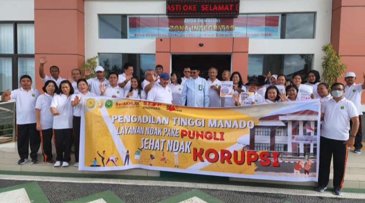 Manado- Pengadilan Tinggi Sulut laksanakan kegiatan Kampanye Anti Korupsi dan gartifikasi ini dilaksanakan karena tindak lanjut dari kesepakatan bersama oleh Pengadilan Tinggi dan Kejaksaan tinggi serta Polda sulut tentang zona integritas wilayah bebas korupsi