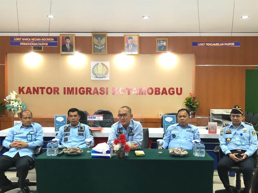 Kotamobagu- Masih dalam kunjungannya di Kota Kotamobagu, Kepala Kantor Wilayah Kementerian Hukum dan HAM Sulawesi Utara (Ronald Lumbuun) menyambangi Kantor Imigrasi Kelas II Non TPI Kotamobagu. Dalam kunjungan yang disambut oleh Kepala Kanim Kotamobagu Teddy Kuantano Achmad tersebut, ia beserta Kepala Divisi Administrasi (John Batara Manikallo), Kepala Divisi Keimigrasian Friece Sumolang, serta Kepala Divisi Pelayanan Hukum dan HAM Rudy Hendra Pakpahan melihat kondisi dan ruang kantor serta ruang pelayanan pada Kanim Kotamobagu. Selain itu, ia juga menyempatkan diri untuk memberikan beberapa arahan kepada Jajaran Kanim Kotamobagu.