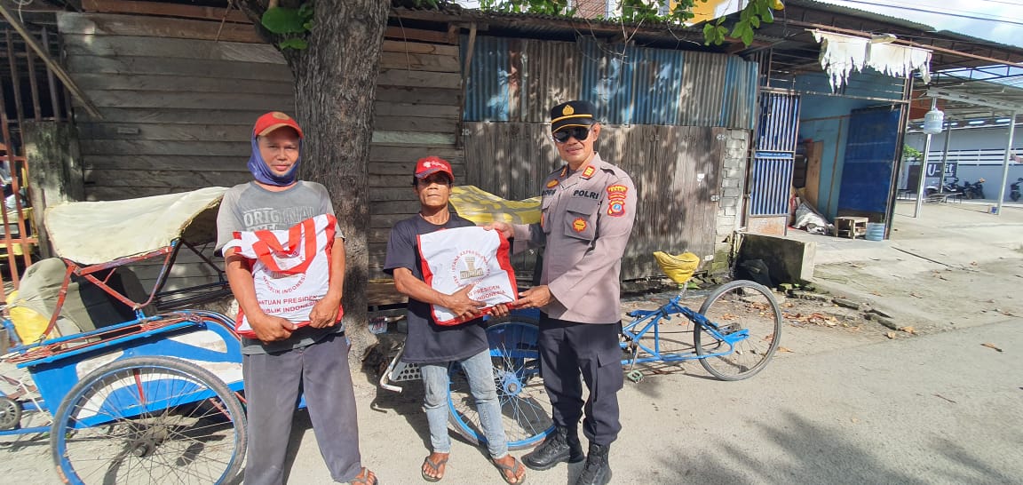Kapolsek Palu Barat Salurkan Bansos Presiden Jokowi Ke Abang Becak dan Buruh Bangunan