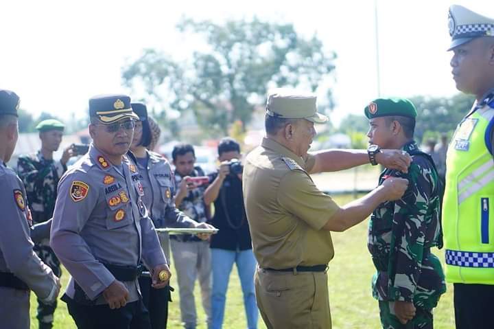 Bolmut– Bupati Bolaang Mongondow Utara Drs. Hi. Depri Pontoh Menghadiri Apel Gelar Pasukan Operasi Kepolisian Terpusat “Ketupat Samrat 2023” Polres Bolmut yah bertempat di Halaman Polres Bolmut.