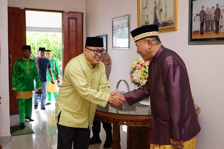 Bolmut– Bupati Bolaang Mongondow Utara (Ki Doni Pangulu) Drs. Hi. Depri Pontoh menerima Prosesi Adat Mopohabaru/Mopotau oleh Aliansi Lembaga adat Bolmut Dalam Rangka Menyambut 1 Syawal 1444 H 2023 Masehi yang Bertempat di Kediaman Bupati Bolaang Mongondow Utara, Kecamatan Bolangitang Barat, Desa Bolangitang Satu.