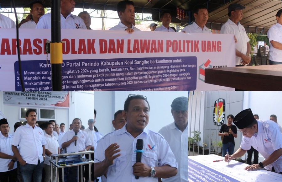 Dipimpin langsung oleh Ketua DPD Partai Perindo Sangihe, Ferdy Panca Sinedu, S.T, yang memboyong sejumlah pengurus dan Bacaleg, Partai besutan Hary Tanoesoedibjo itu tampil beda dengan mendeklarasikan “Menolak dan Melawan Politik Uang” pada perhelatan Pemilu 2024.