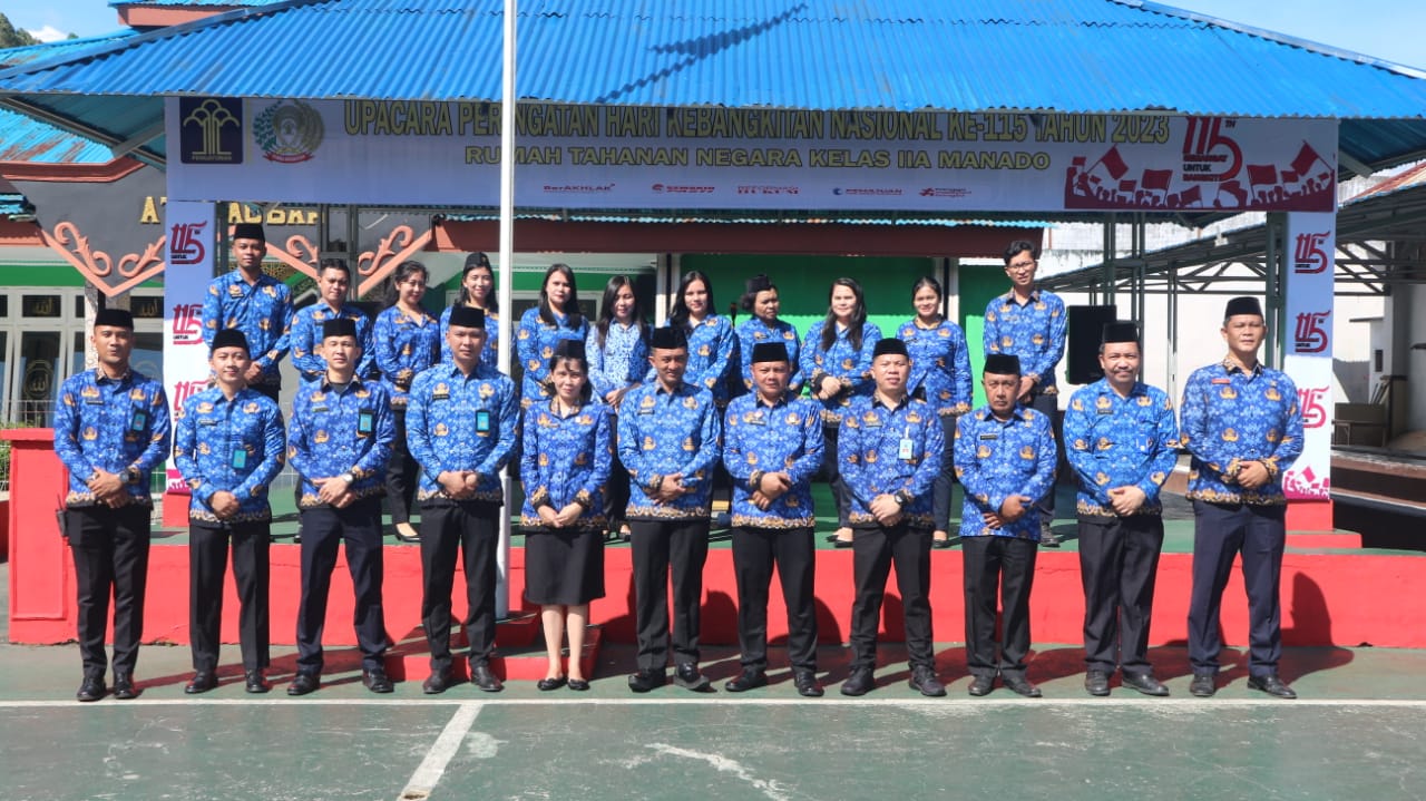 Manado-Momen upacara bendera dalam memperingati Hari Kebangkitan Nasional ke-115 edisi tahun 2023 berlangsung di Rumah Tahanan Negara Kelas IIA Manado, Senin (22/05).