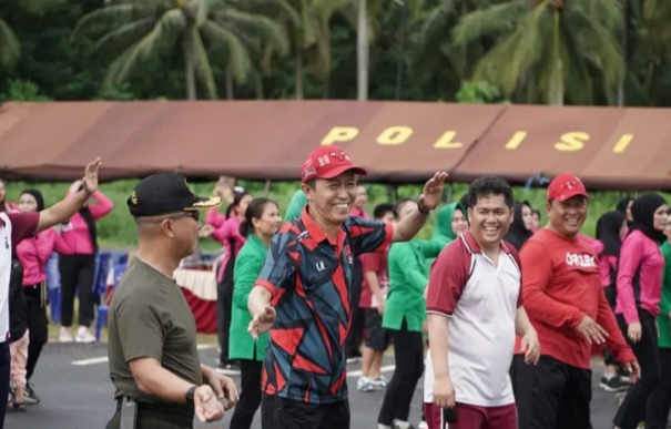 Bolsel–Bupati H. Iskandar Kamaru SPt bersama Wakil Bupati Deddy Abdul Hamid memeriahkan acara bertajuk Olahraga Bersama Pemkab – TNI – Polri – Masyarakat Bolaang Mongondow Selatan untuk Mewujudkan Kondusifitas Keamanan Dalam Negeri dalam Mengawal Tahun Politik 2024.