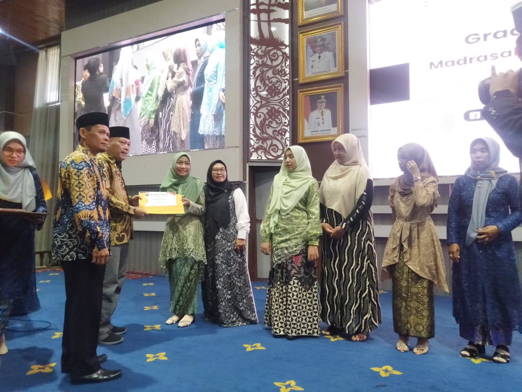 Acara penamatan diawali dengan pembacaan ayat suci Al-qur’an oleh peserta didik Faturahman dilanjutkan dengan menyanyikan Lagu Kebangsaan Indonesia Raya dan Mars Madrasah