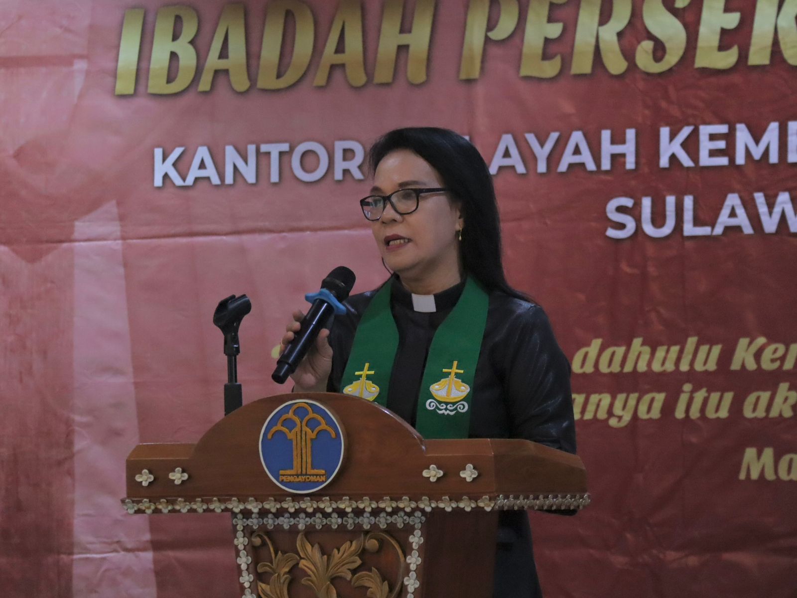Seusai ibadah, Kakanwil menyampaikan terimakasih kepada pendeta dan seluruh dan jemaat yang hadir. “Carilah dahulu kerajaan Allah dan kebenarannya maka segala sesuatunya akan ditambahkan kepadamu,” ucap Kakanwil mengutip firman Tuhan.(**)
