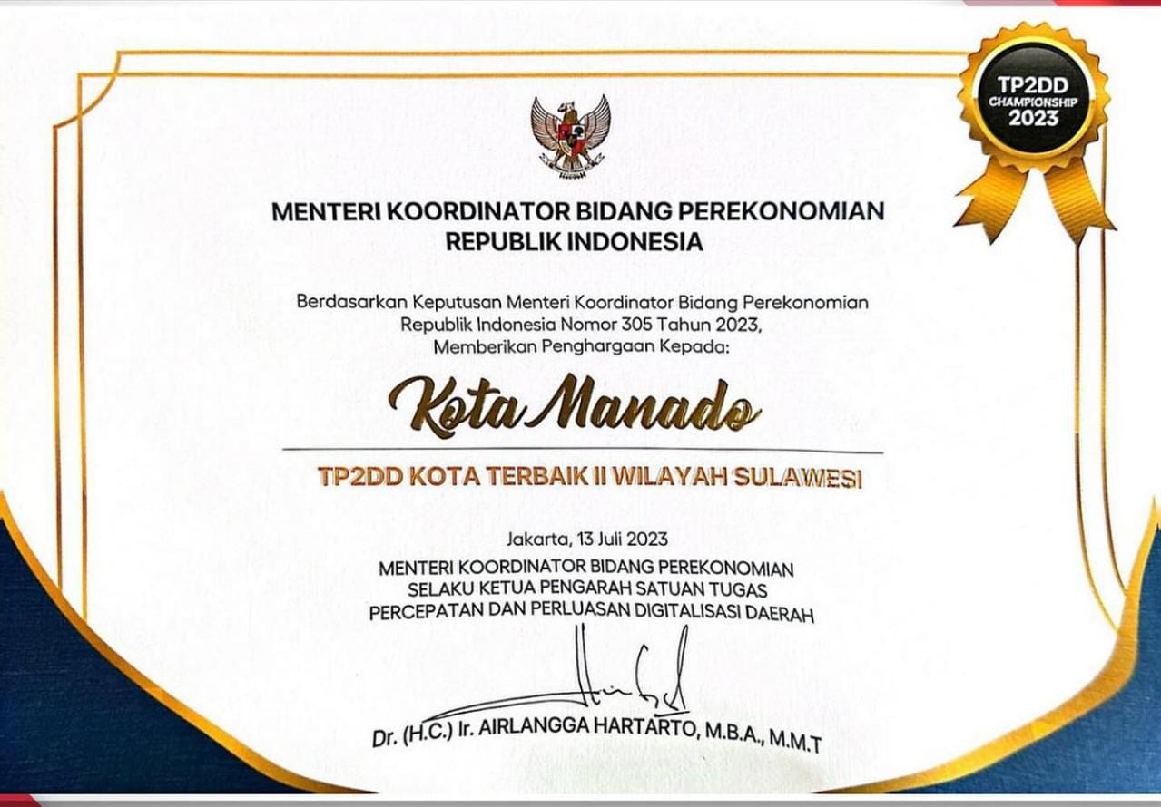 Pada kesempatan tersebut ,  Kota Manado menerima penghargaan Championship sebagai Kota Terbaik II Wilayah Sulawesi.Penyelenggaraan evaluasi kinerja TP2DD atau Championship merupakan wujud akuntabilitas evaluasi kinerja TP2DD sekaligus apresiasi inisitatif Pemerintah Daerah dalam mendukung kebijakan P2DD.