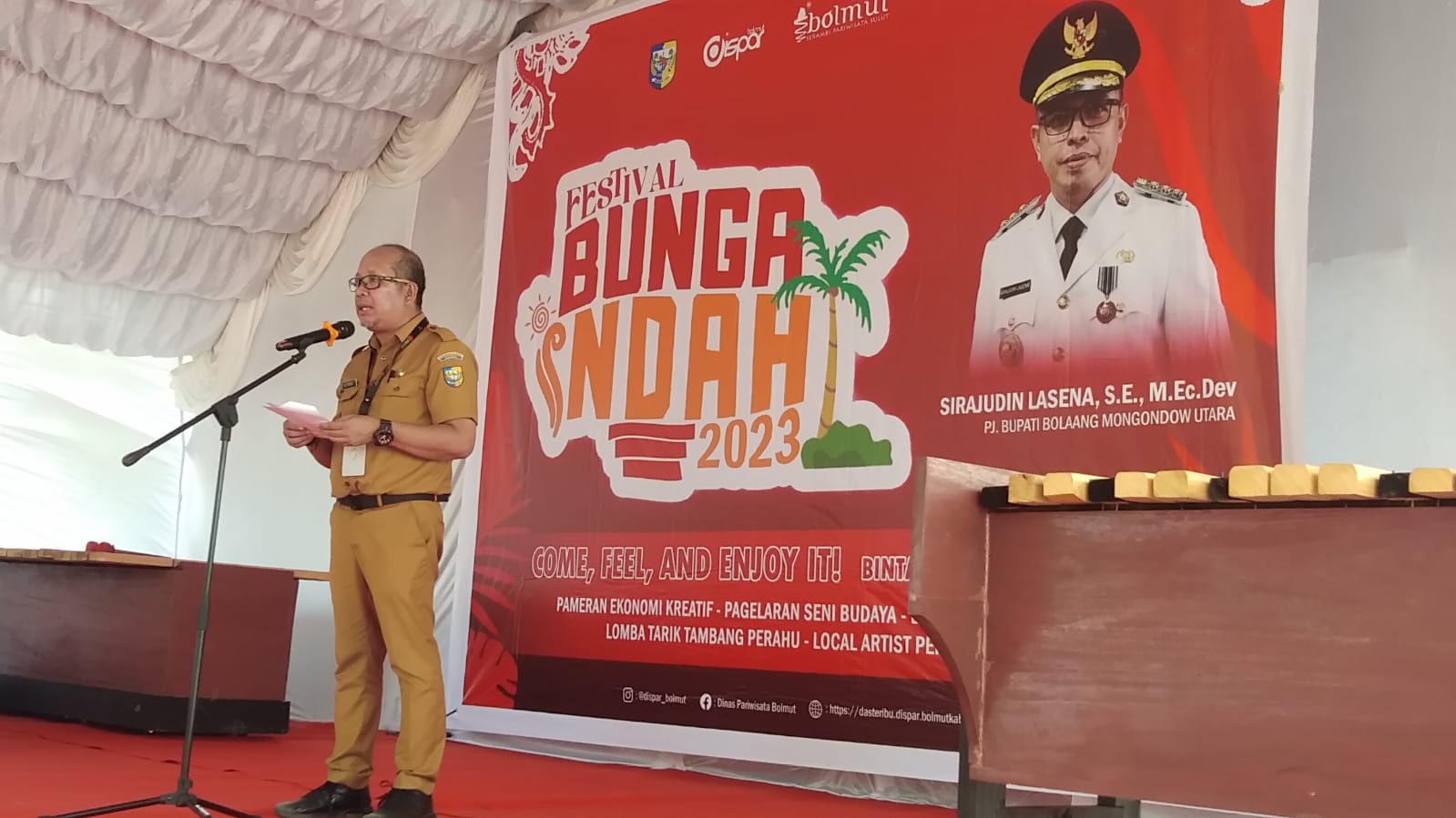 Bolmut – Penjabat Bupati Bolaang Mongondow Utara (Bolmut) Sirajudin Lasena SE MEc Dev Memberikan apresiasi yang tinggi pada Dinas Pariwisata (Dispar) yang telah melaksanakan kegiatan Festival bunga Indah bertempat di desa Bunong, Kecamatan Bintauna,Selasa (31/10/2023).