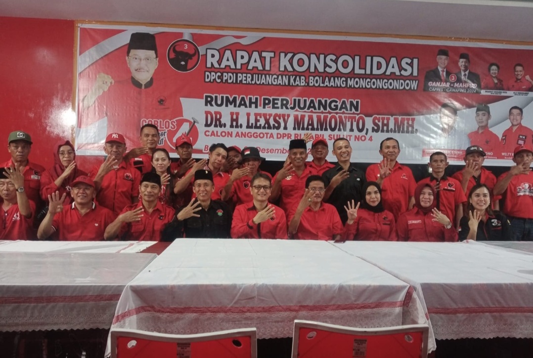 Suarasulut.com Pengurus Dewan Pimpinan Cabang Partai Demokrasi Indonesia Perjuangan (PDIP) Bolaang Mongondow laksanakan kegiatan Rapat Konsolidasi Pileg dan Pilpres dikediaman rumah Dr.H.Lexsy Mamonto,SH.MH Selasa 05/12/23 yang juga selaku Caleg DPR RI dari PDIP dapil Sulawesi Utara