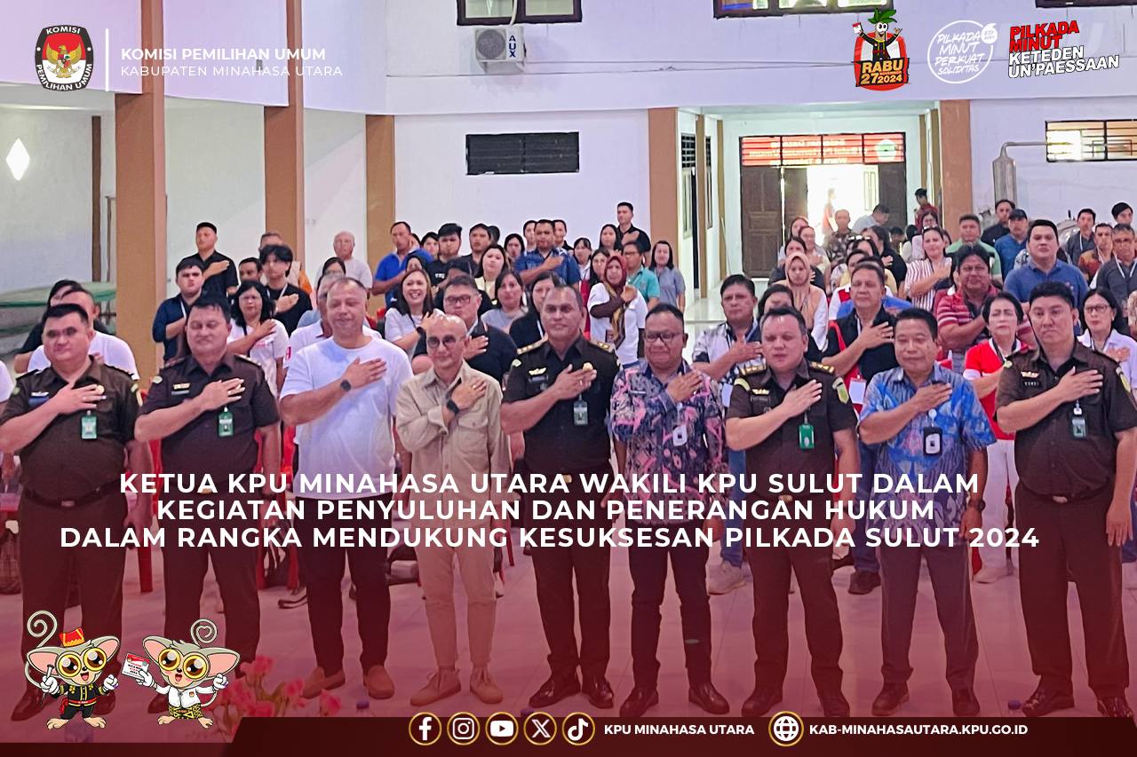 Minahasa Utara — Komisi Pemilihan Umum (KPU) Provinsi Sulawesi Utara (Sulut) bekerja sama dengan Kejaksaan Tinggi Sulut telah menggelar kegiatan penyuluhan dan penerangan hukum dalam rangka mendukung kesuksesan Pilkada Sulut 2024. Kegiatan ini dilaksanakan pada tanggal 21 Juni 2024 di Kantor Hukum Tua Desa Talawaan, Kecamatan Talawaan, Kabupaten Minahasa Utara.