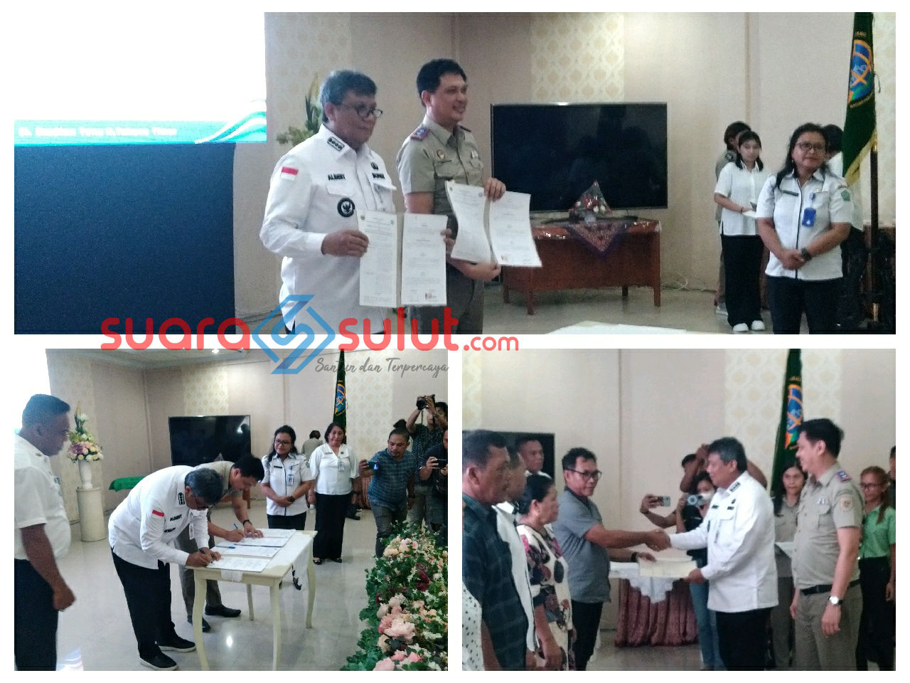 Sangihe, SuaraSulut.com — Pemerintah Kabupaten (Pemkab) Kepulauan Sangihe bersama Kantor Pertanahan Kabupaten Kepulauan Sangihe resmi menandatangani Memorandum of Understanding (MoU) dalam rangka penerapan sertifikat tanah elektronik pertama di Sulawesi Utara. Penandatanganan ini dilakukan oleh Penjabat (Pj) Bupati Kepulauan Sangihe, Albert Huppy Wounde, SH. MH., dan Kepala Kantor Pertanahan, Steven Octavia Kennedy Wowor, S.ST., M.A.P., di Ruang Serba Guna Rumah Jabatan Bupati Kepulauan Sangihe.