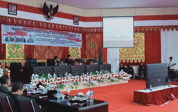 Rapat paripurna tersebut dilaksanakan di gedung DPRD Kotamobagu pada Jumat, 16 Agustus 2024.