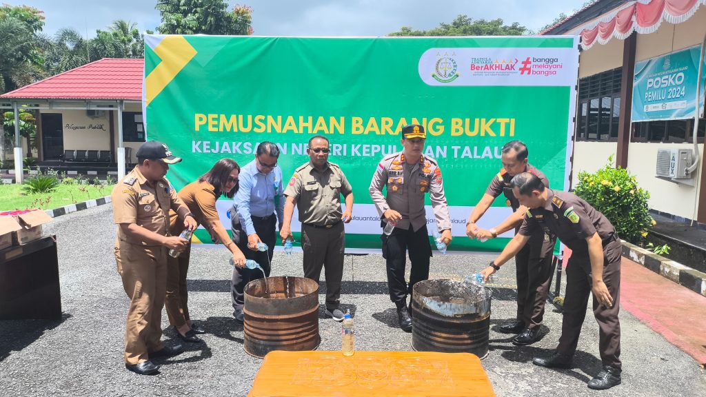 Kepala Kejaksaan Negeri Kepulauan Talaud Yanuar Utomo, S.H., M.Hum mengatakan kegiatan tersebut memusnahkan 750 liter barang bukti Miras jenis arak (Cap tikus).