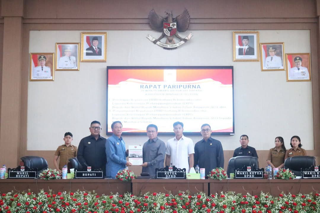 Agenda Penetapan Keputusan DPRD Tentang Rekomendasi Atas Laporan Keterangan Pertanggungjawaban (LKPJ) Bupati dan Wakil Bupati Minahasa Selatan Tahun Anggaran 2024, dan Penyampaian Keputusan DPRD Tentang Rekomendasi Atas Laporan Keterangan Pertanggungjawaban (LKPJ) Bupati dan Wakil Bupati Minahasa Selatan Tahun Anggaran 2024 Kepada Bupati Minahasa Selatan,