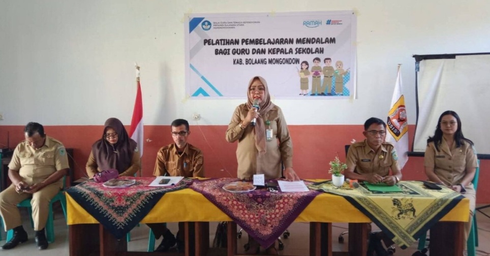 BOLMONG-Dalam rangka meningkatkan kualitas pembelajaran satuan Pendidikan, Balai Besar Guru dan Tenaga Kependidikan (BBGTK) Provinsi Sulawesi Utara berkolaborasi dengan Dinas Pendidikan Kabupaten Bolaang Mongondow (Bolmong) menggelar pelaksanaan Pelatihan Pembelajaran Mendalam bagi Guru dan Kepala Sekolah jenjang Pendidikan Dasar dan Pendidikan Menengah se Kabupaten Bolmong. Senin, 21 Juli 2025.