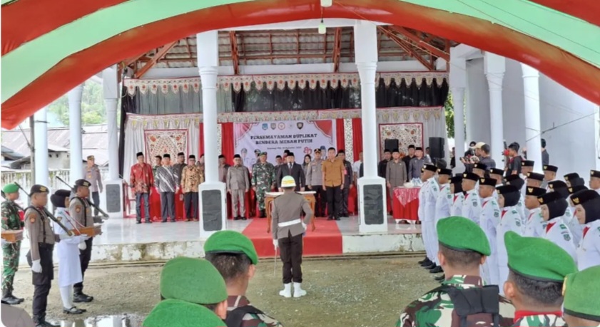 BOLSEL– Menjelang peringatan Hari Ulang Tahun ke-80 Kemerdekaan Republik Indonesia, Pemerintah Kabupaten Bolaang Mongondow Selatan menggelar prosesi pemindahan Bendera Merah Putih dengan penuh khidmat. Bupati H. Iskandar Kamaru SPt, MSi bertindak sebagai inspektur upacara dalam prosesi pemindahan yang dilaksanakan pada Sabtu (16/8).
