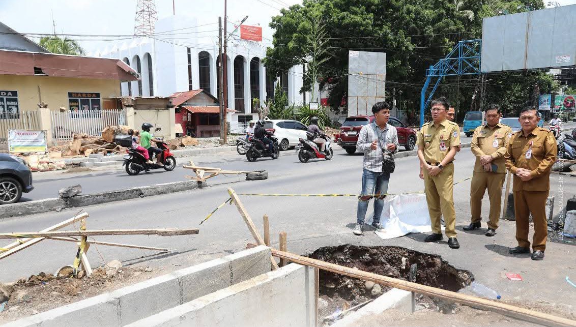 Dalam peninjauan tersebut, Wali Kota melihat secara langsung pengerjaan pedestrian yang tengah berlangsung, sekaligus memastikan kualitas pembangunan berjalan sesuai standar.