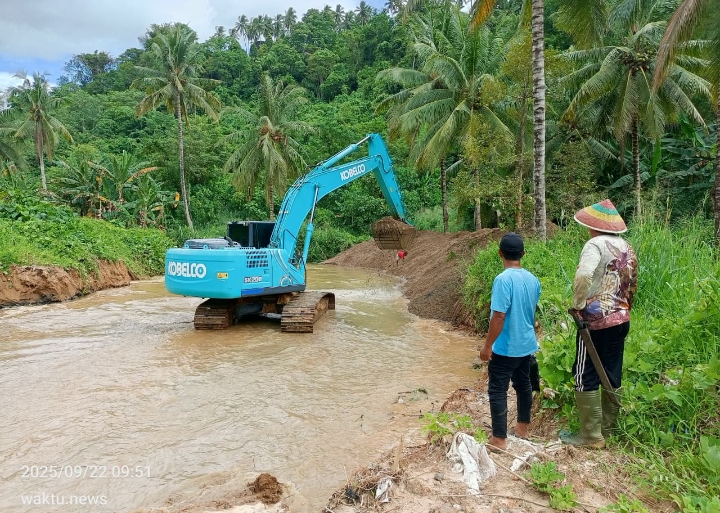Sebagai bentuk kepedulian, koperasi ini menurunkan satu unit ekskavator untuk melakukan pengerukan material sungai, Senin (22/9/2025) pagi.
