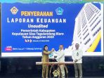 Heronimus Makainas menyampaikan laporan tentang perkembangan angka kemiskinan serta capaian program kegiatan penanggulan kemiskinan dan kemiskinan ekstrem tahun 2024 di Kabupaten Kepulauan Sitaro.