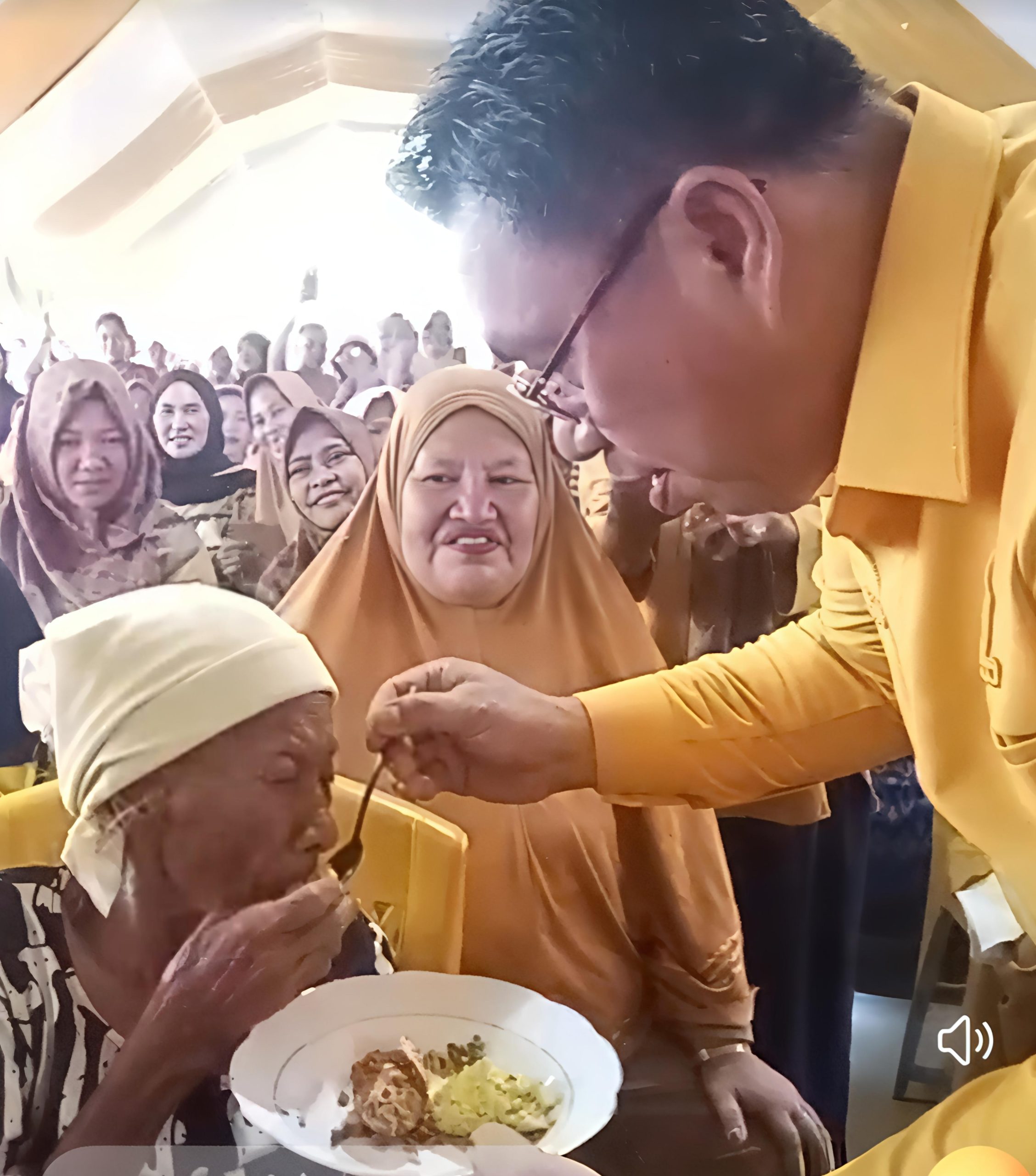 Tony Lasut Menyuapi Lansia Usai Potong Tumpeng HUT ke 61 Partai Golkar