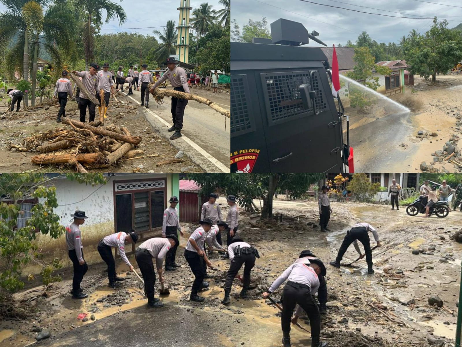 Selain membersihkan akses jalan utama, personel Brimob juga membantu warga membersihkan rumah-rumah penduduk, fasilitas umum, sekolah, serta rumah ibadah yang ikut terdampak banjir.