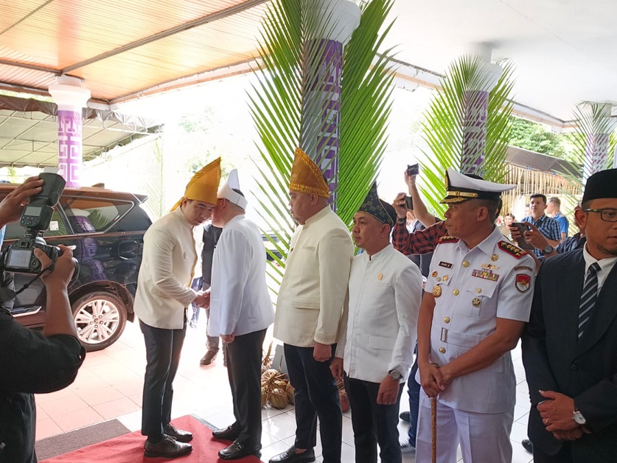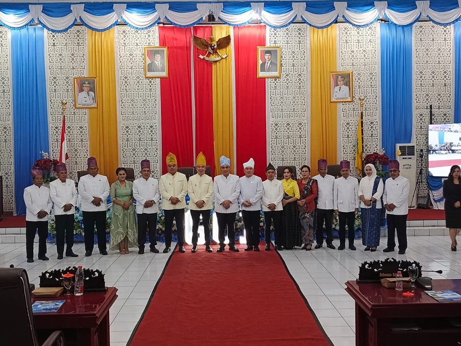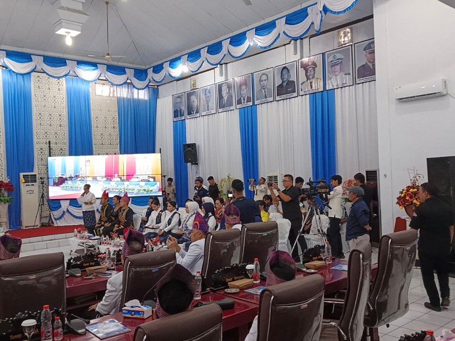 Rapat Paripurna yang dimulai tepat pukul 11.00 WITA ini menjadi saksi kekompakan para pemimpin “Permata Nusa Utara”. Bupati Michael Thungari bersama istri, Cherry Shandyca Soeyoenus, serta Wabup Tendris Bulahari bersama istri, tampak gagah mengenakan pakaian adat Sangihe berwarna krem dengan ornamen keemasan—sebuah simbol kebanggaan atas identitas budaya yang tetap dijaga meski zaman terus bergulir.