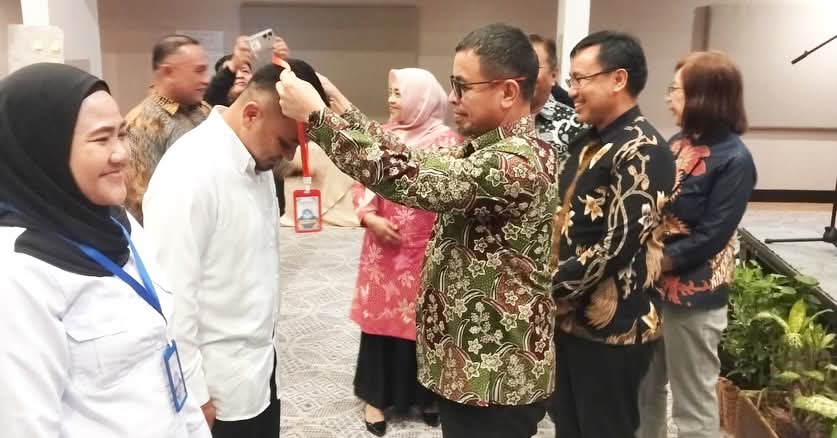 Penutupan ditandai dengan penanggalan kartu peserta oleh Bupati sebagai simbol berakhirnya proses pelatihan.