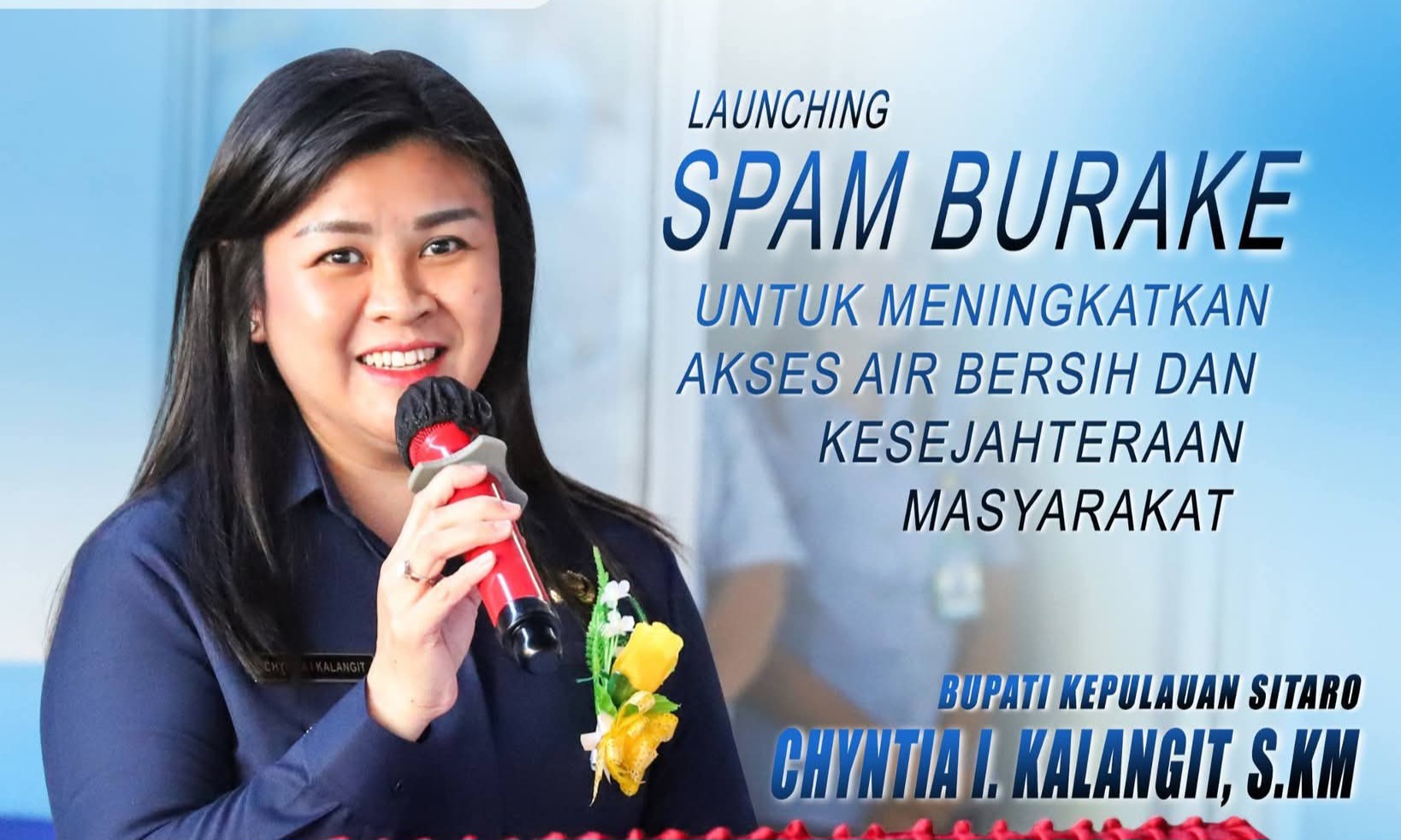 Bupati Kepulauan Sitaro, Chyntia I. Kalangit, secara resmi meluncurkan Sistem Penyediaan Air Minum (SPAM) Burake pada Senin, 27 April 2026, di Kampung Talawid, Kecamatan Siau Barat Selatan.