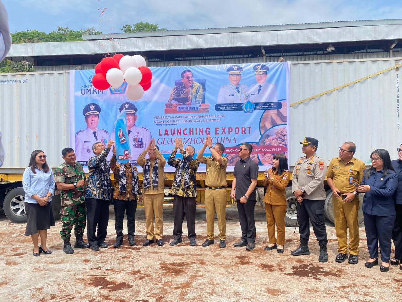 Pemerintah Kabupaten Minahasa Selatan resmi melepas ekspor perdana produk olahan kelapa dari Rumah Produksi Bersama (RPB) Desa Kapitu, Kecamatan Amurang Barat, Selasa (28/4/2026). Sebanyak dua kontainer berisi coco fiber, husk chip, dan peat block diberangkatkan menuju Guangzhou, China.