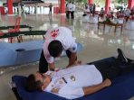 PALU, Bidang humas (Bidhumas) Polda Sulteng Bersama Palang Merah Indonesia (PMI) Sulawesi Tengah (Sulteng), menggelar donor darah di Palu. Kabid humas Polda