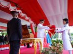 Bolmut–Wakil Bupati Bolaang Mongondow Utara Drs. Hi. Amin Lasena, MAP bertindak selaku Inspektur Upacara (Irup) Penurunan Bendera Merah Putih dalam rangka HUT