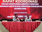 Manado – Kantor Wilayah Kemenkumham Sulawesi Utara laksanakan evaluasi kinerja melalui Rapat Koordinasi capaian kinerja semester II TA. 2022. Rapat koordinasi ini