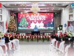 Manado – Polda Sulawesi Utara (Sulut) menggelar perayaan Natal bersama tahun 2022, di Manado Convention Centre, pada Kamis (12/1/2023). Rangkaian kegiatan tersebut